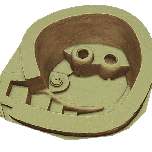 384 photos. Completely processed (aligned, scaled, modeled, cleaned, simplified, unwrapped, textured, meshed) in Reality Capture.