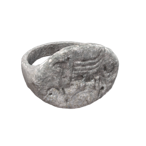 Bronze ring with incised decoration from the archaeological site of Cerro de las Cabezas, Valdepeñas, Castilla-La Mancha, Spain. Iron Age (4th-3rd centuries BC). In the collection of the Valdepeñas Museum. Catalog number 020-CC86-A12-1. Model made in Reality Capture using 707 images. Additional processing completed in Geomagic Wrap, Zbrush, and Blender.