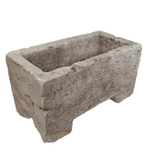 Travertine lid of urn. Tumulus of Molinello