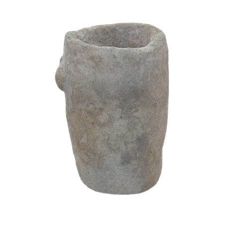 Votive limestone artefact of circular shape. In the center it has a circular perforation, on both sides, around the hole, a protruding edge is visible.