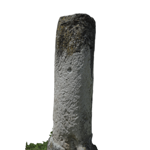 Gabled roof stećak from Osenik site near Hadžići, central Bosnia. It is richly decorated. On one side there is a depiction of medieval turnament. Figures of two horseman and archer are carved in low relief technique. XIV – XV century.